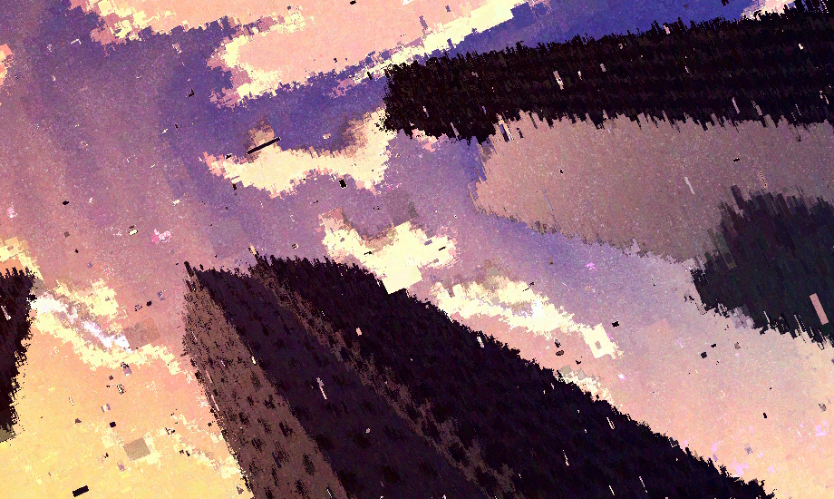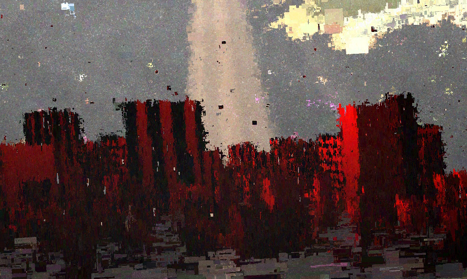 Algorithms generate various compositions, colors, and other features. I have attempted to make each output feel nostalgic and fresh at the same time. The blocks, which have lost their original meaning, are contrasted with the data, which exists in isolation from them, in stillness and movement. Occasional red clouds or blocks mean that they are rendered as red, the first color, due to missing information.