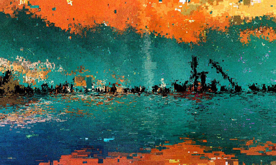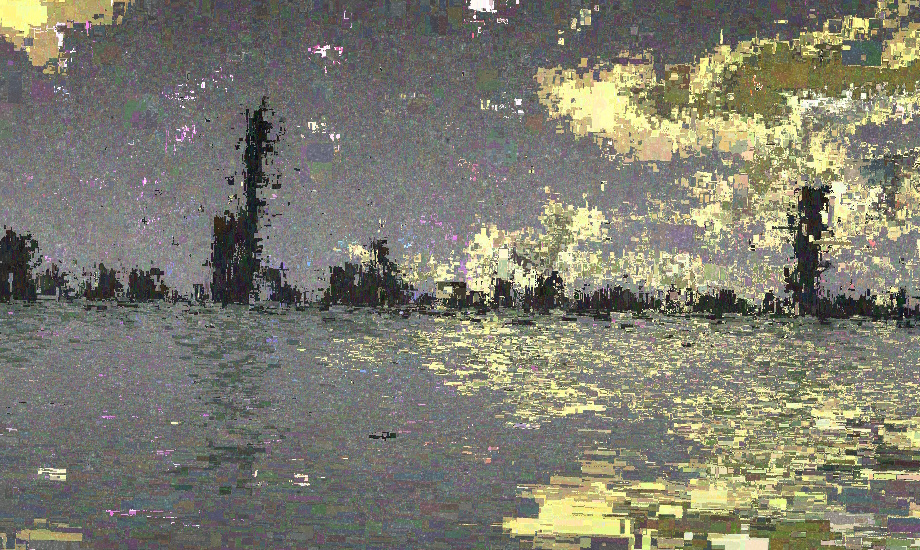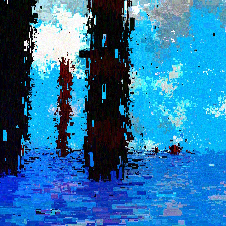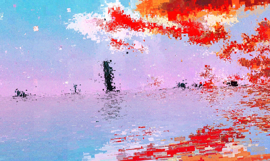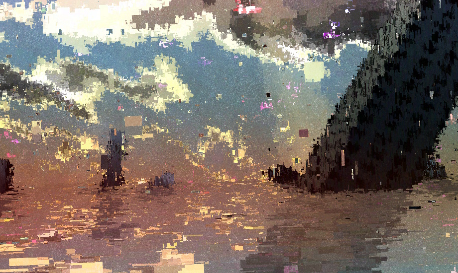 For the visual expression technique, I further pursued and evolved the drawing system that I have developed in "GHOST IN THE CODE" and my other works. Everything is composed of rectangles to evoke the digital and the pixel. Depth is linked to the size of the rectangles, and distant objects are represented by small rectangles as if they were in focus. Dispersion in the position and color of the rectangles indicates the degree of deterioration of the world. Moreover, the sky, the blocks, and the surface of the water are identified, and each has its own characteristics.